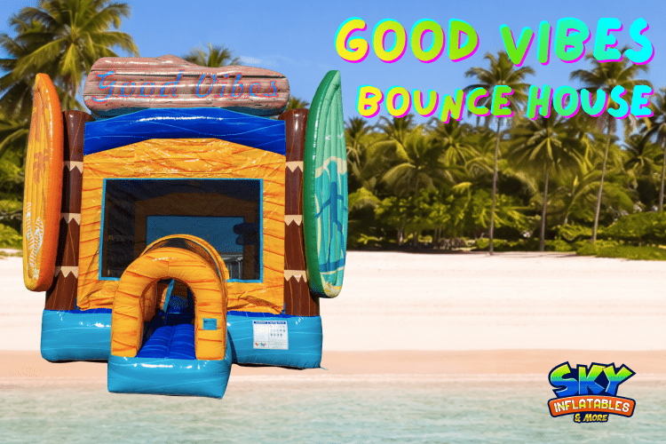Bring fun, color, and positive energy to your next event with the Good Vibes Bounce House from SKY Inflatables & More, one of the most stylish and fun-filled bounce house rentals in Bowling Green, KY. Designed with bright colors and a surf-side theme, this inflatable is perfect for creating a lively, upbeat atmosphere that guests of all ages will love.