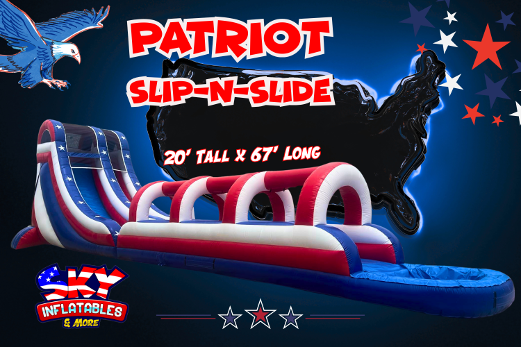 Step into a wave of exhilarating fun with the 20' Patriot Slip n Slide! This vibrant, red, white, and blue slide is perfect for any celebration, adding a splash of patriotic pride to your event. Whether it's a backyard barbecue or a birthday bash, get ready to dash and dive through 20 feet of refreshing, fast-paced excitement. It's a surefire way to cool down and amp up the fun under the sun!