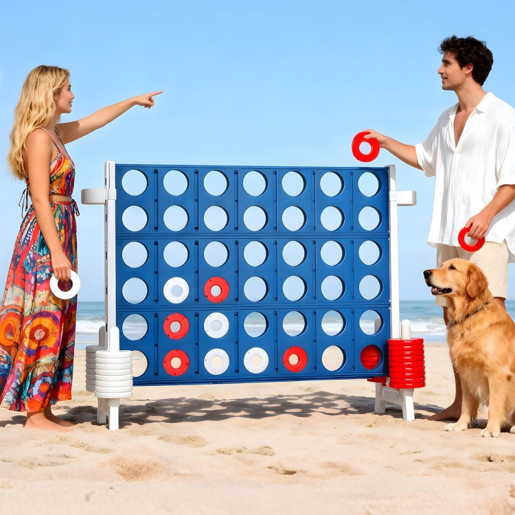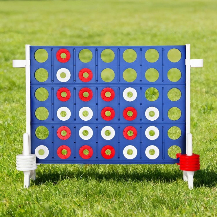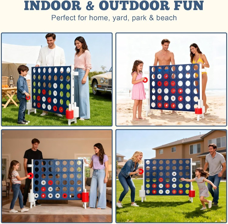 Giant Size for Immersive Group Play: Experience the thrill of our oversized 4-in-a-row game! With a commanding 47.5-inch wide board standing 39.75 inches tall, this giant set creates an engaging centerpiece for any backyard BBQ, family reunion, or indoor game night, perfect for teens and adult players.